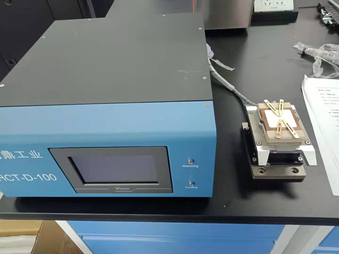 探針臺(tái)主要應(yīng)用于半導(dǎo)體行業(yè)、光電行業(yè)、集成電路以及封裝的測(cè)試。廣泛應(yīng)用于復(fù)雜、高速器件的精密電氣測(cè)量的研發(fā),旨在確保質(zhì)量及可靠性,并縮減研發(fā)時(shí)間和器件制造工藝的成本。此定制TEC制冷卡盤可與探針臺(tái)連用,在不消耗液氮的情況下給樣品提供高低溫的環(huán)境。
