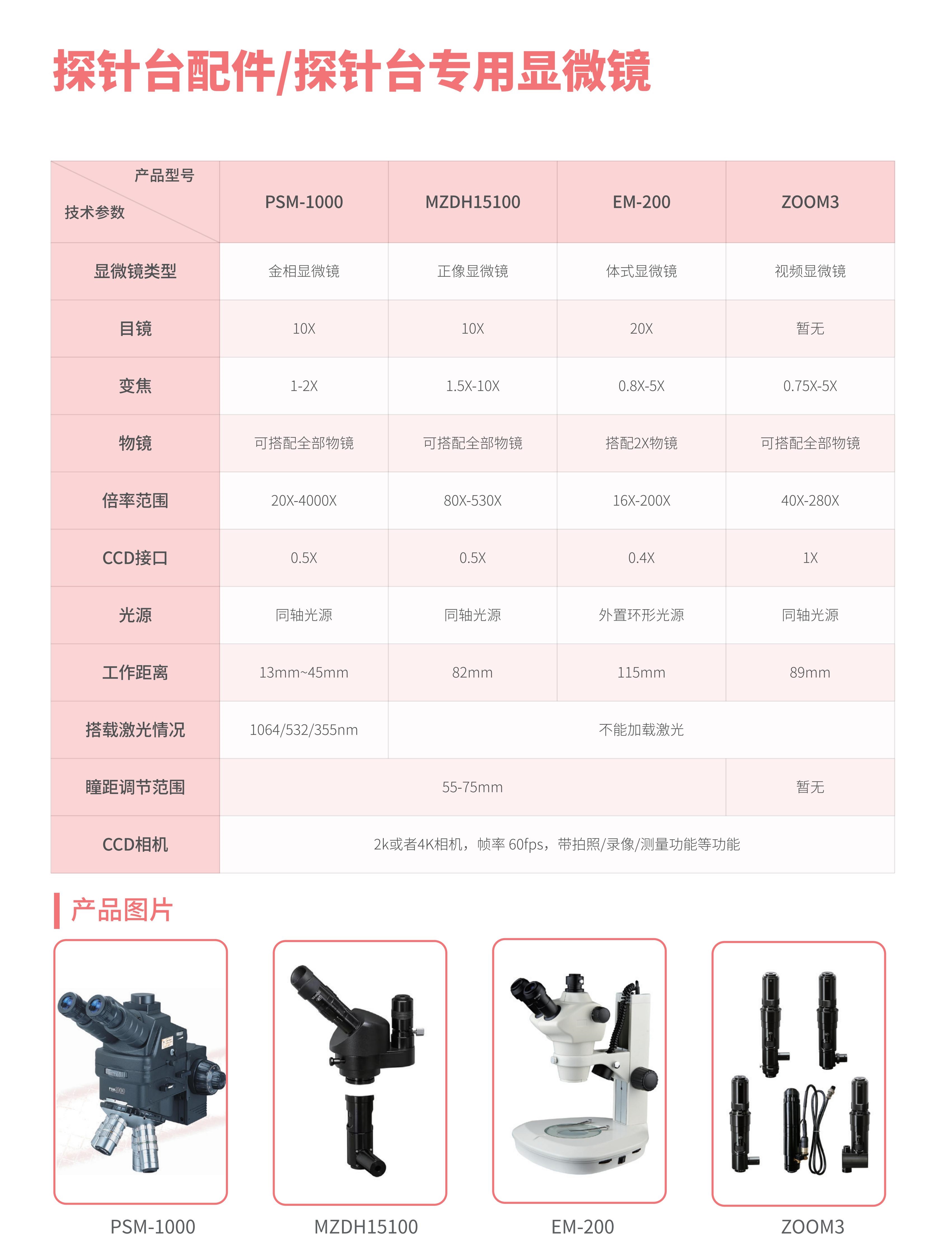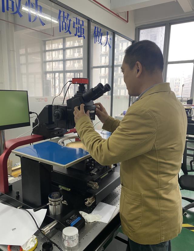 由于測(cè)試芯片的pad電極非常小,需要借助光學(xué)顯微鏡看清pad電極,使探針與pad電極接觸。